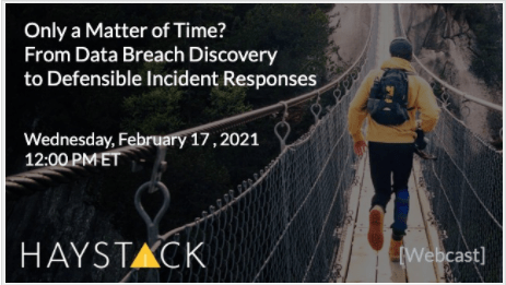 Tomorrow, HaystackID will host the webcast A Matter of Time? From Data Breach Discovery to Defensible Incident Responses at noon ET (11am CT, 9am PT). In this expert presentation, cybersecurity incident response, legal discovery, and privacy experts will share how organizations should be prepared to respond to a cyber-related incident, while also gaining insight into cutting-edge data discovery technologies and proven document review services to support the detection, identification, review, and notification processes required by law after sensitive data-related breaches and disclosure.